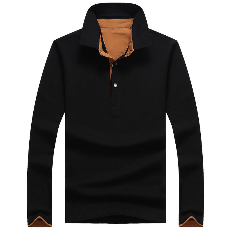 Men'S Casual Long-Sleeved Cotton Polo Shirt Youth Lapel Solid Color Long-Sleeved T-Shirt Men Black orange 2XL