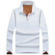 Men'S Casual Long-Sleeved Cotton Polo Shirt Youth Lapel Solid Color Long-Sleeved T-Shirt Men White orange 2XL