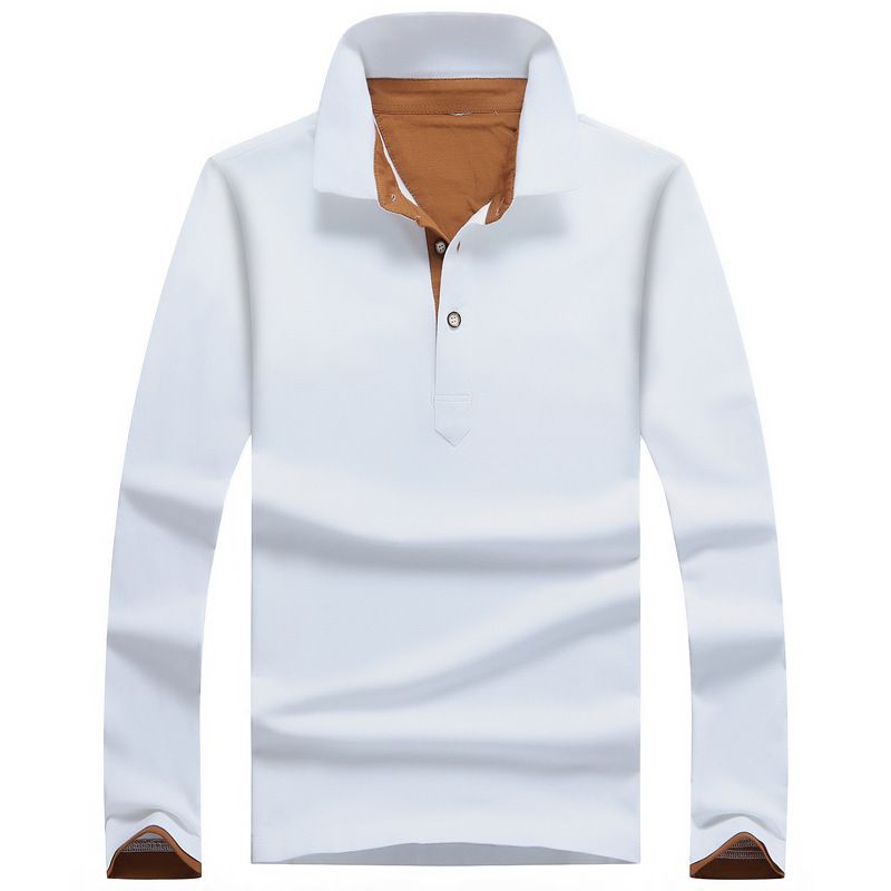 Men'S Casual Long-Sleeved Cotton Polo Shirt Youth Lapel Solid Color Long-Sleeved T-Shirt Men White orange M