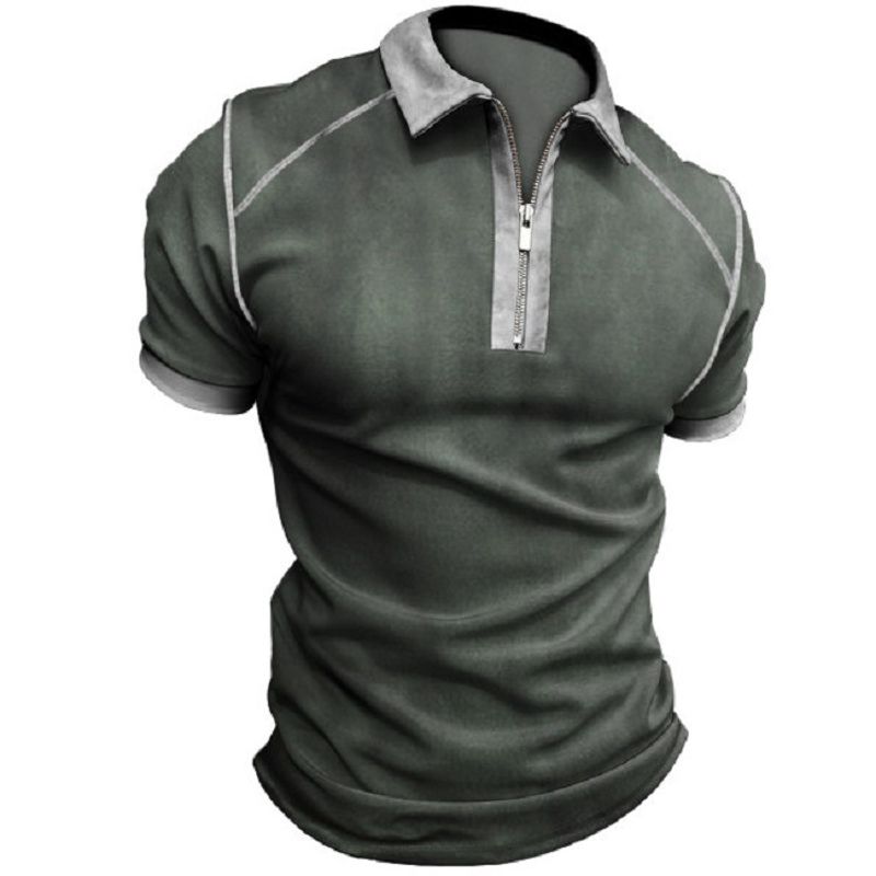 Men's Casual Short Sleeve Digital Print Zip Pullover Men's Polo Shirt Green 4XL
