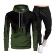 Men's Casual Solid Color Sweater Long Sleeved Sports Hooded 3D Sweater Trousers Suit Army Green 2XL