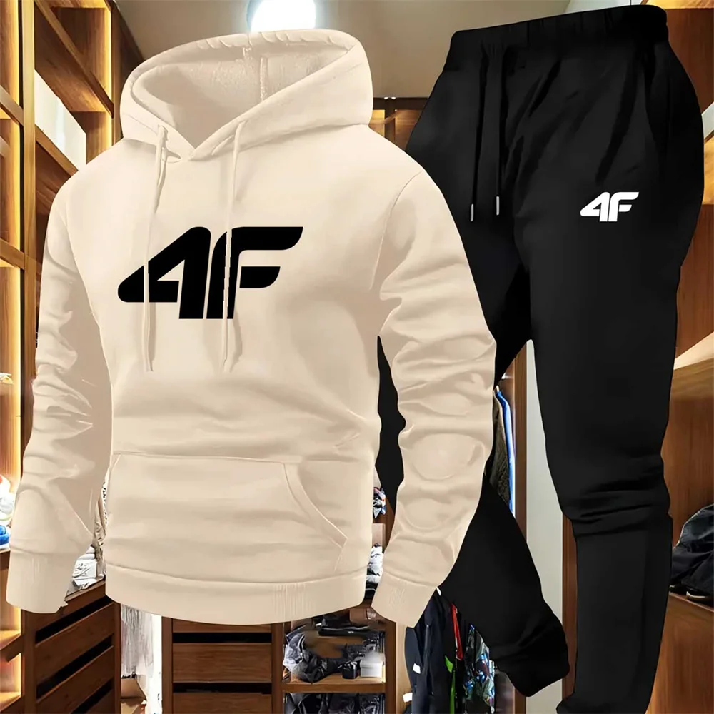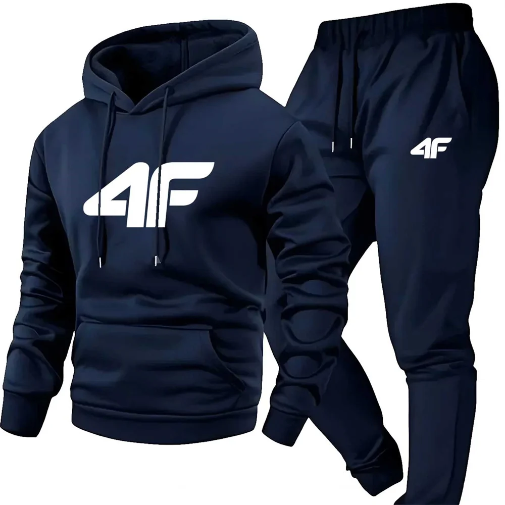 Men'S Casual Sports Raglan Sleeve Hooded Sweatshirt Two-Piece Set 4F Print Sweatshirt Casual Versatile Trendy Hoodie Set
