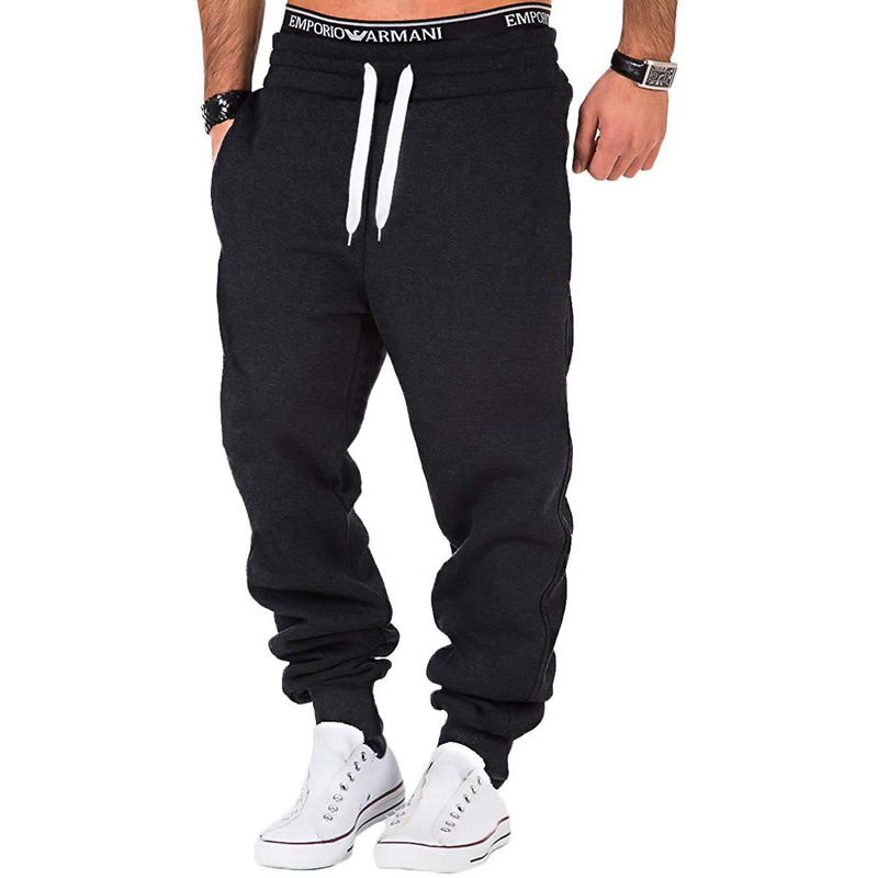 Men's Casual Sports Trousers Leggings Fitness Pants Black 2XL