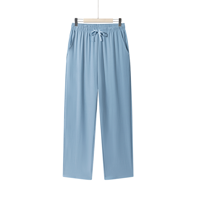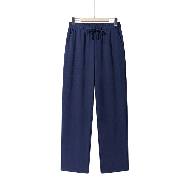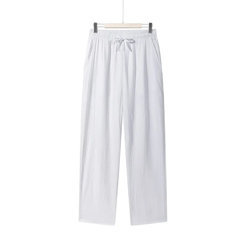 Men's Casual Straight Trousers Summer Autumn Breathable Solid Color Long Pants Drawstring Fitness Sweatpants Men Streetwear