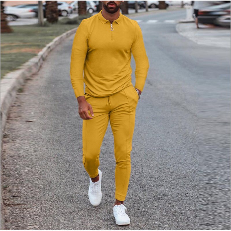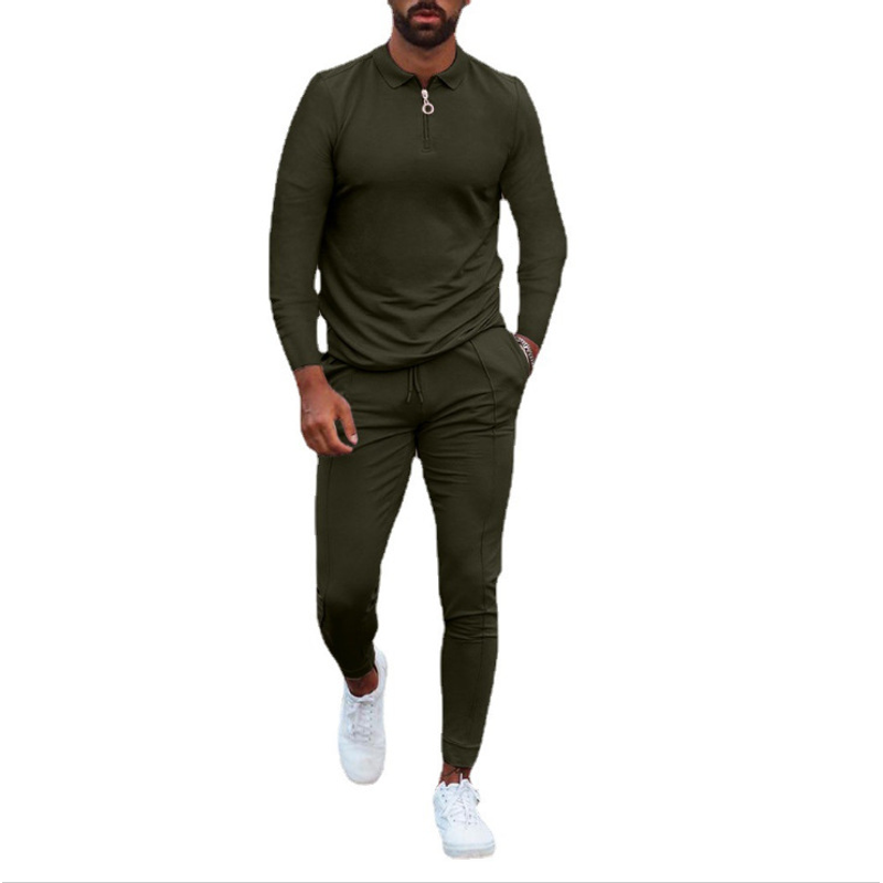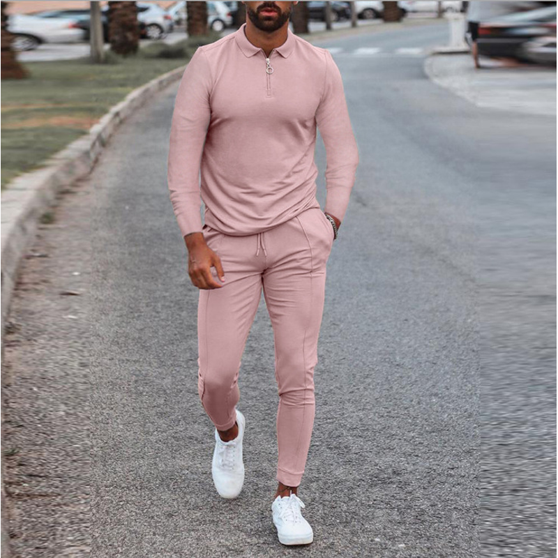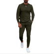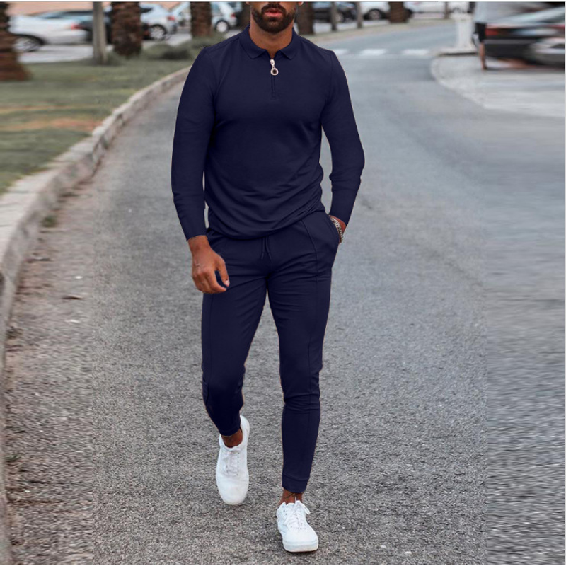 Men's casual suit lapel solid color long sleeve two-piece suit Navy Blue M
