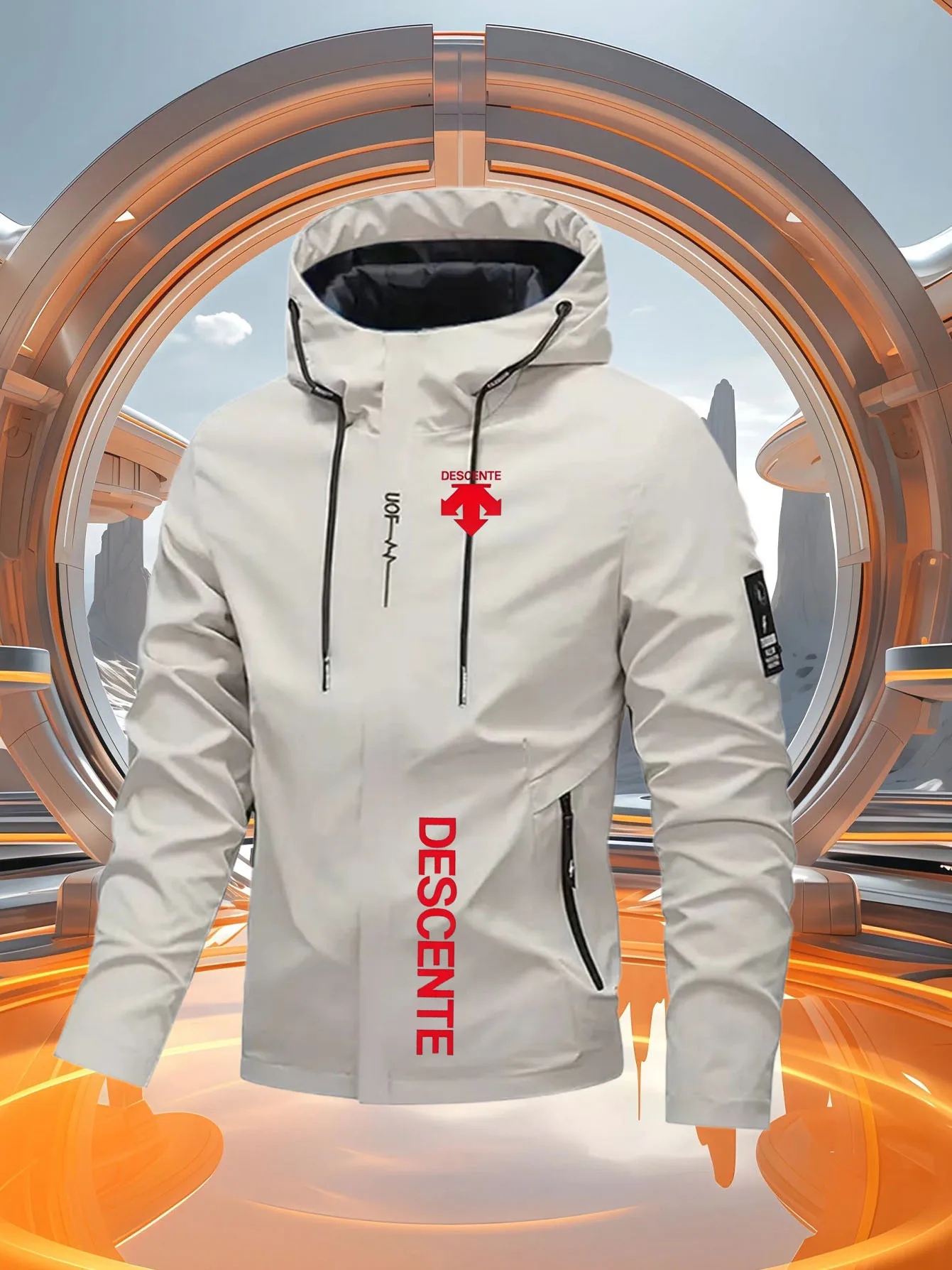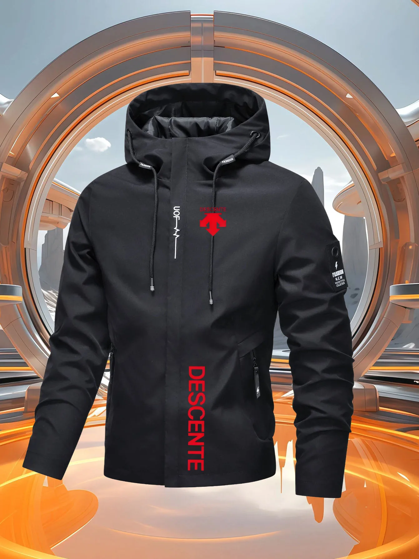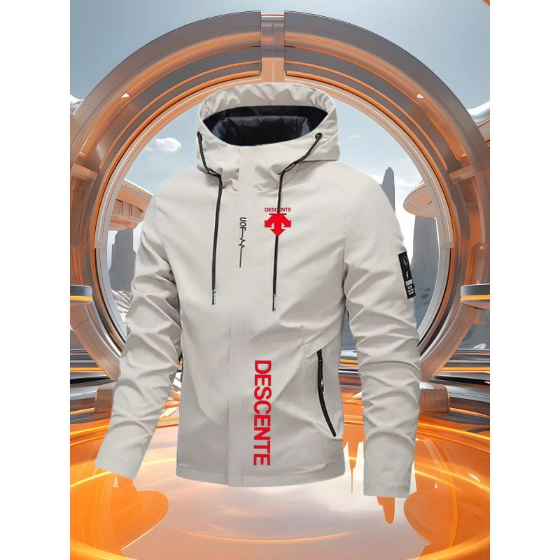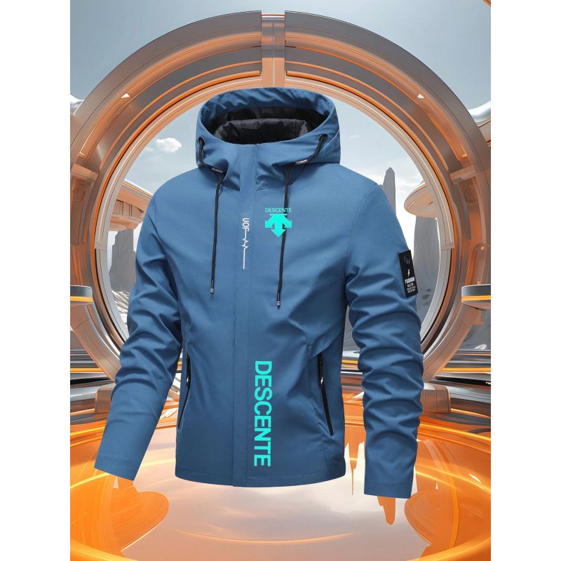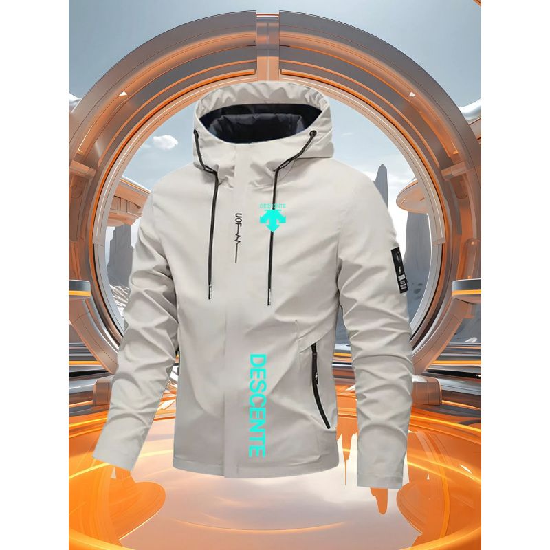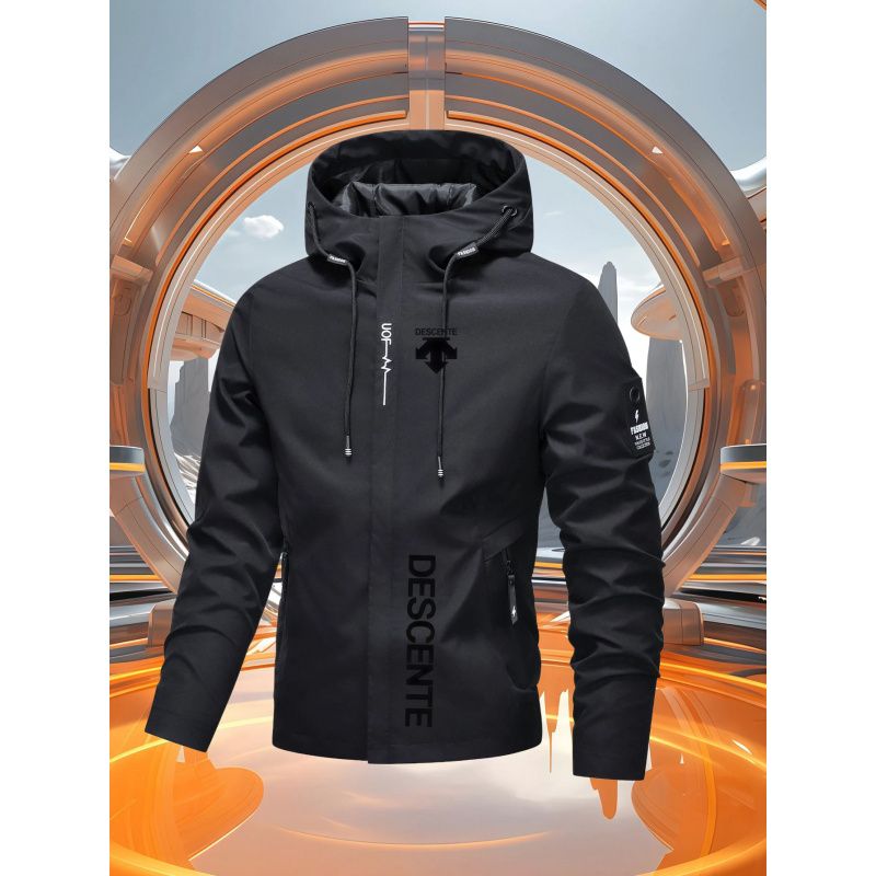 Men's Casual Windproof Jacket for Spring Autumn Outdoor Sports with Zipper Hooded Quality Coat Top