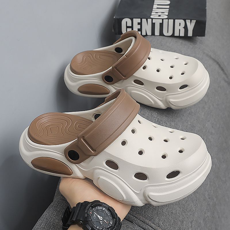 Men's Closed-Toe Slippers for Summer, Dual-Purpose for Home and Outdoor Wear, Sporty Hollow Breathable Beach Sandals, Unisex Cou
