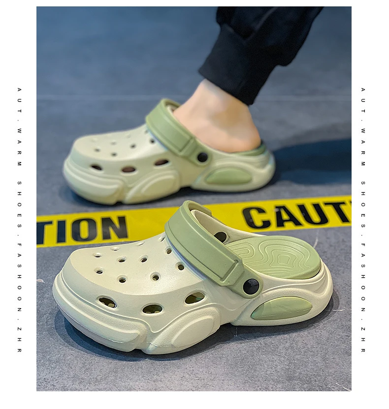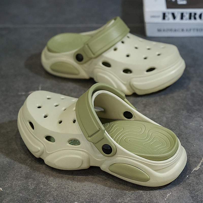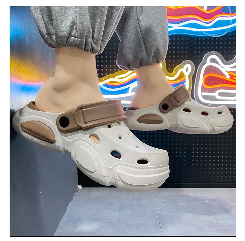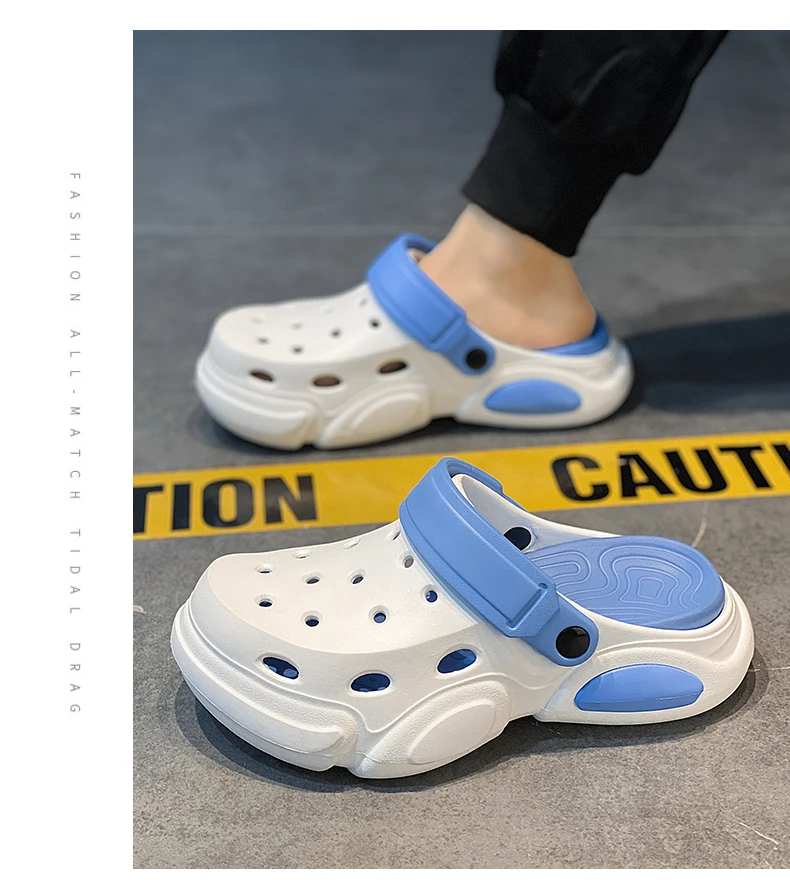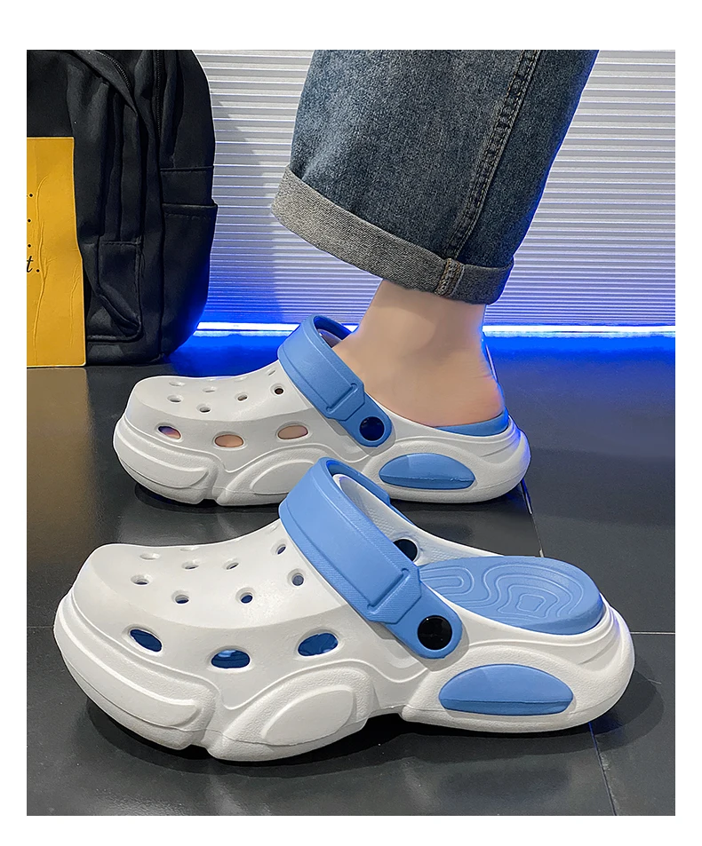 Men's Closed-Toe Slippers for Summer, Dual-Purpose for Home and Outdoor Wear, Sporty Hollow Breathable Beach Sandals, Unisex Cou