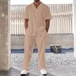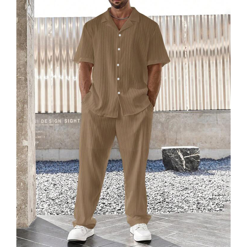Men's Commuter Suit Casual Button Shirt Short Sleeve Trousers Brown 2XL