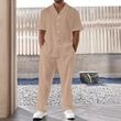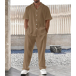 Men's Commuter Suit Casual Button Shirt Short Sleeve Trousers Brown 3XL