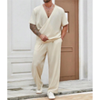 Men's Commuter Suit Casual Solid Color Short-sleeved Trousers Apricot 3XL