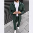Men's Corduroy Long Sleeve Lapel Shirt Trousers Daily Casual Suit Dark Green L