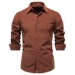 Men's Corduroy Pure Cotton Business Casual Long Sleeve Shirt Brown XL
