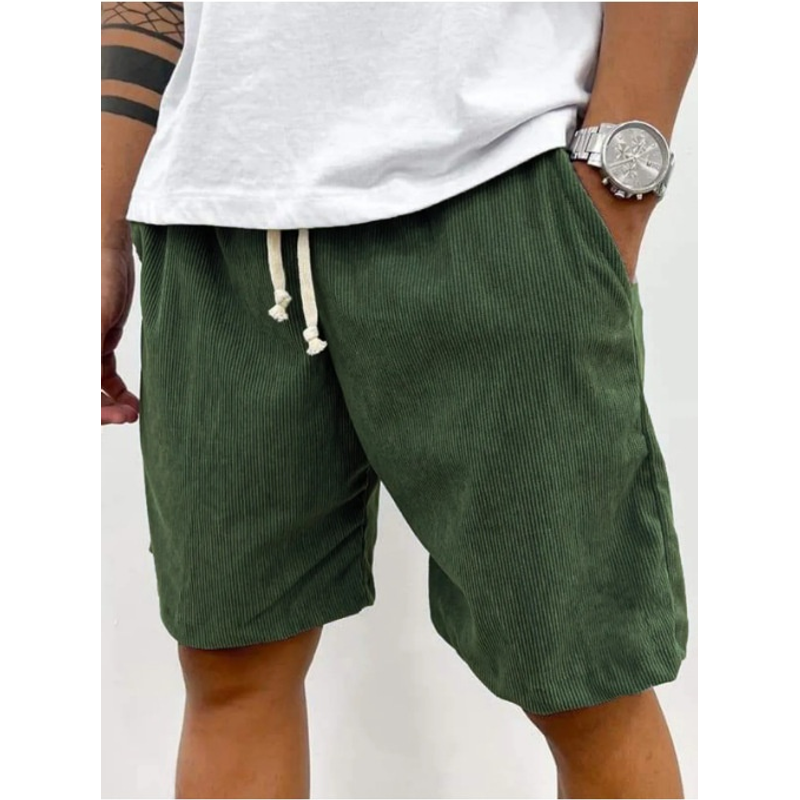 Men's Corduroy Shorts With Drawstring Fashion Casual Pockets Pants Summer Green S