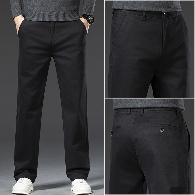Men's Cotton Casual Trousers Thickened Pants Black 33