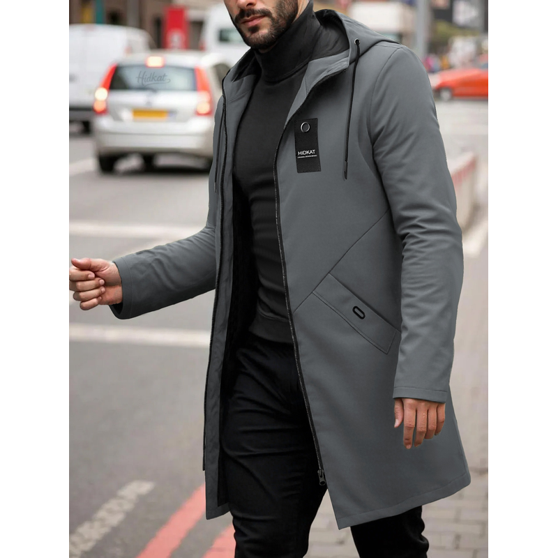 Men's Fashion Casual Jacket with Hood and Drawstring, Solid Color, Suitable for Spring and Autumn Casual Attire