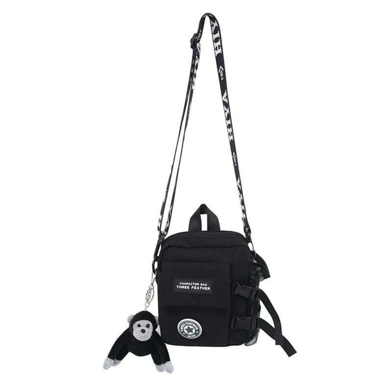 Men's Fashion Casual Personalized Shoulder Crossbody Bag Black Bag with Badge Pendant