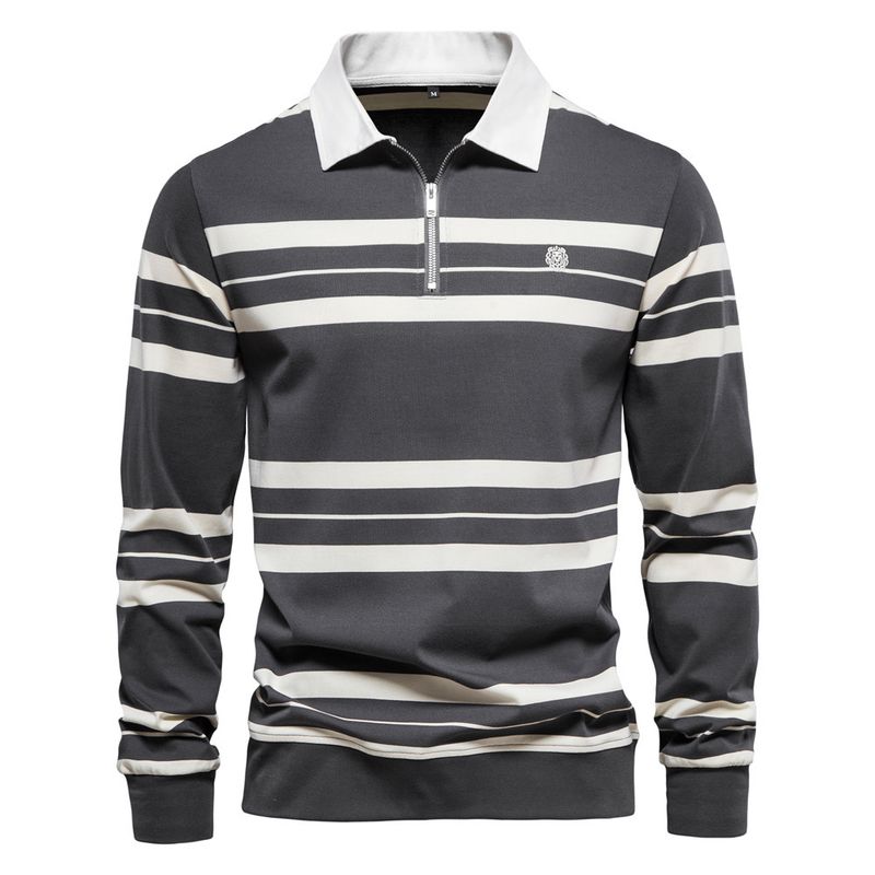 Men's Fashion Casual Polo Collar Striped Short-sleeved T-shirt Meteorite Black L