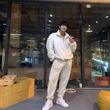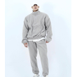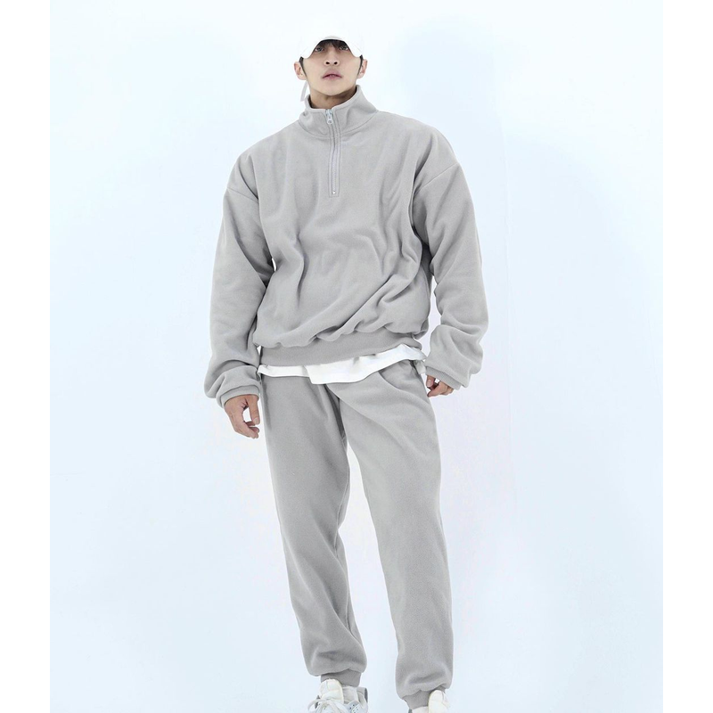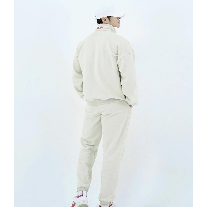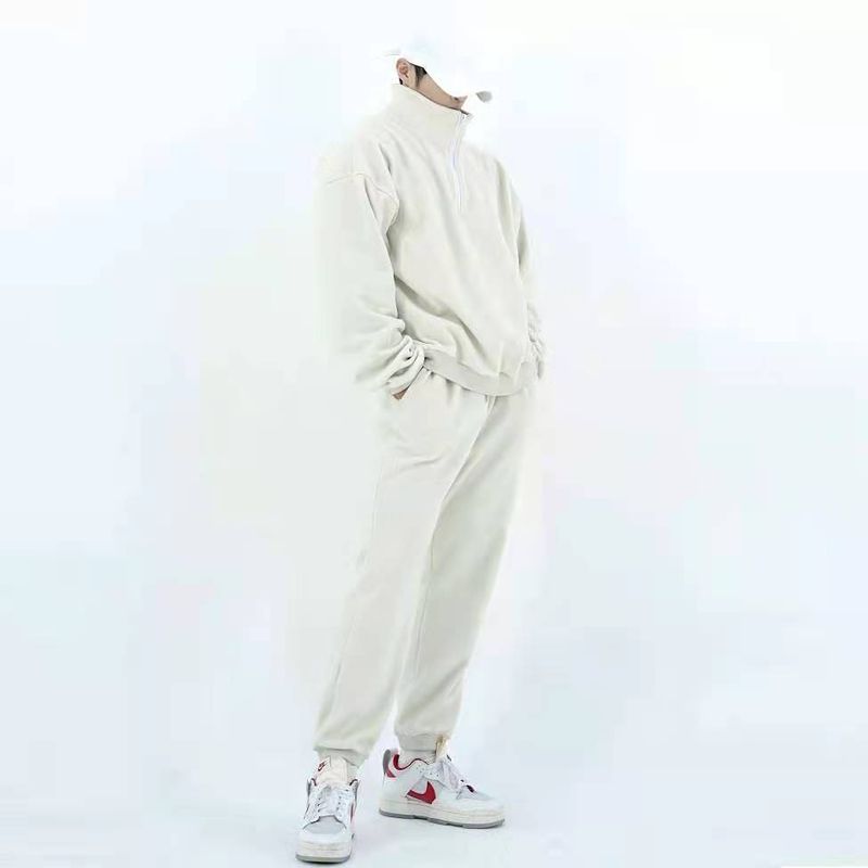 Men's Fashion Casual Stand Collar Long Sleeve Top And Trousers Two-piece Suit Beige XXL