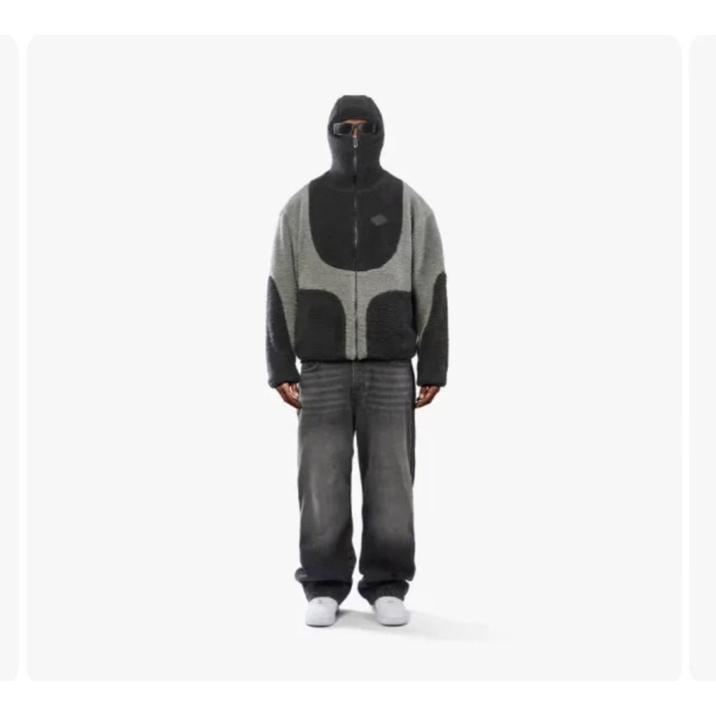Men's Fashion Lamb Wool Hooded Zipper Coat Sweatshirt Patchwork Line Design Male Tops Casual Dark Gray XXL