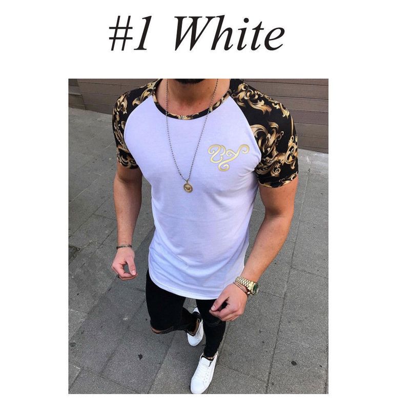 Men's fashion sports fitness short sleeve White M