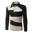 Men's Fashion Striped Slim Long Sleeve Lapel Polo Shirt Men's Long Sleeve Spring Snd Autumn Grey M