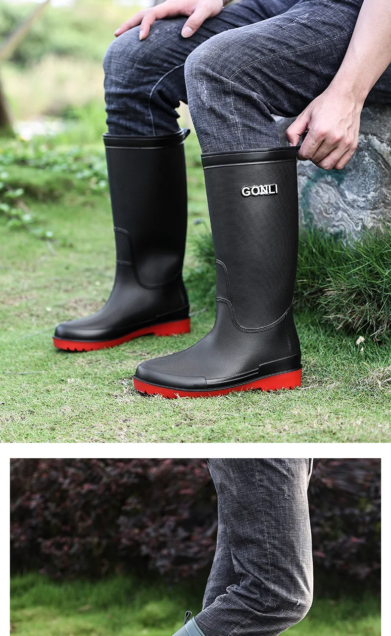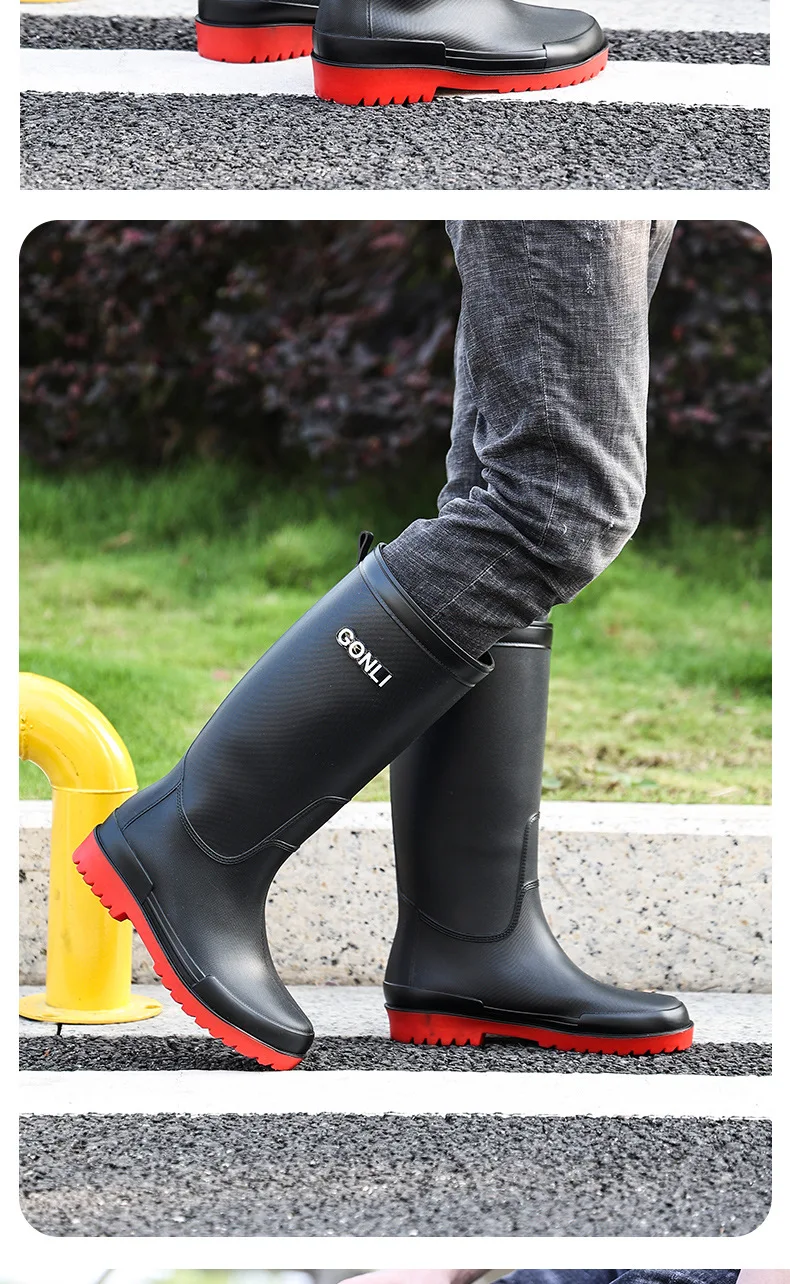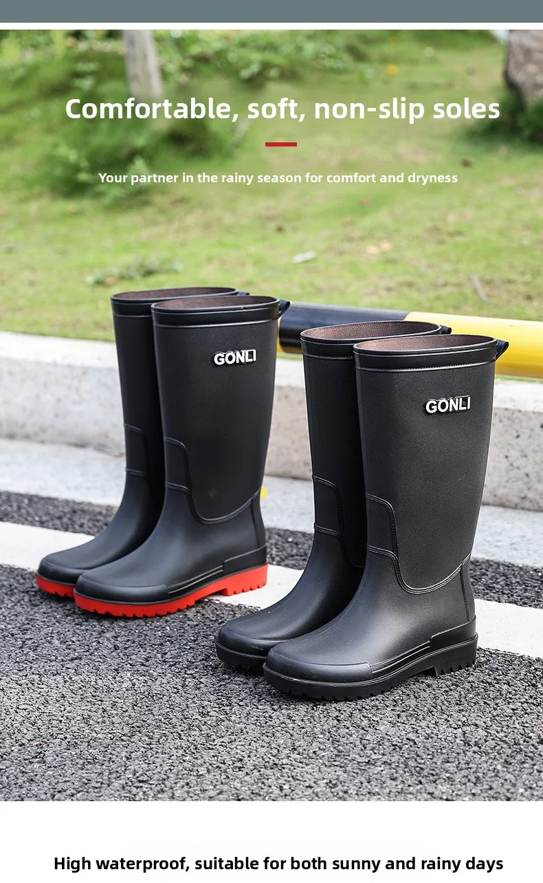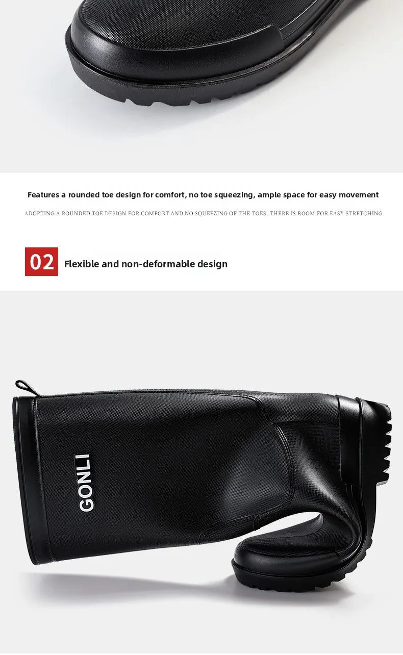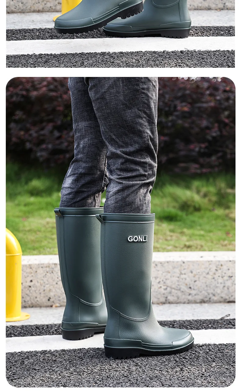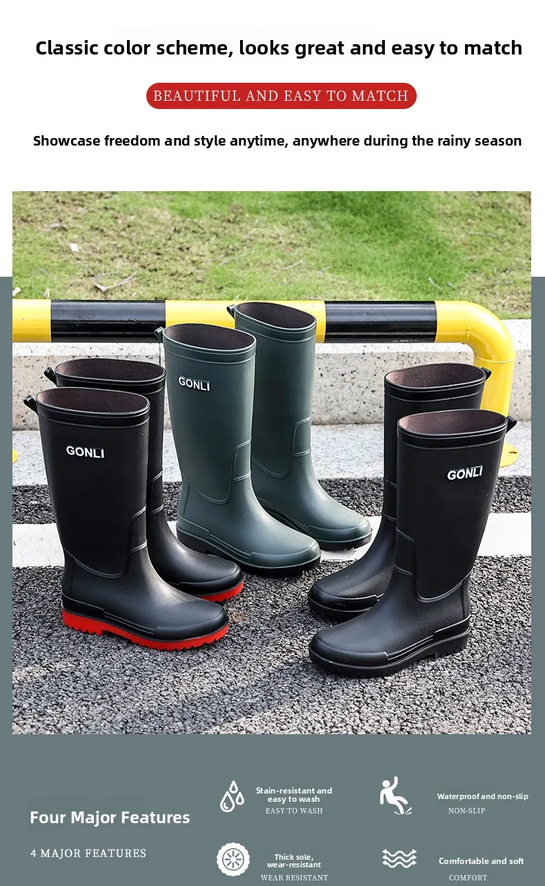 The high-tube design of these men's rain boots adds a touch of fashion to your rainy day outfit while providing excellent protection against wet weather.