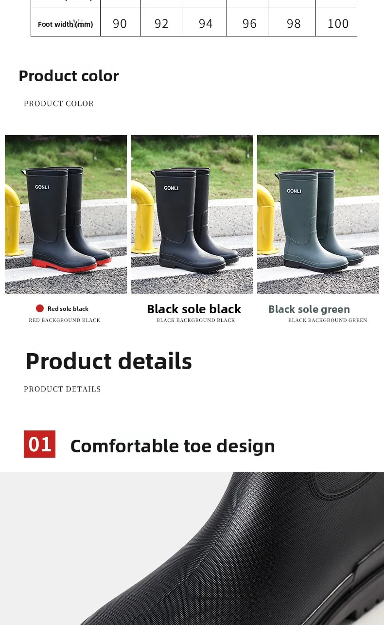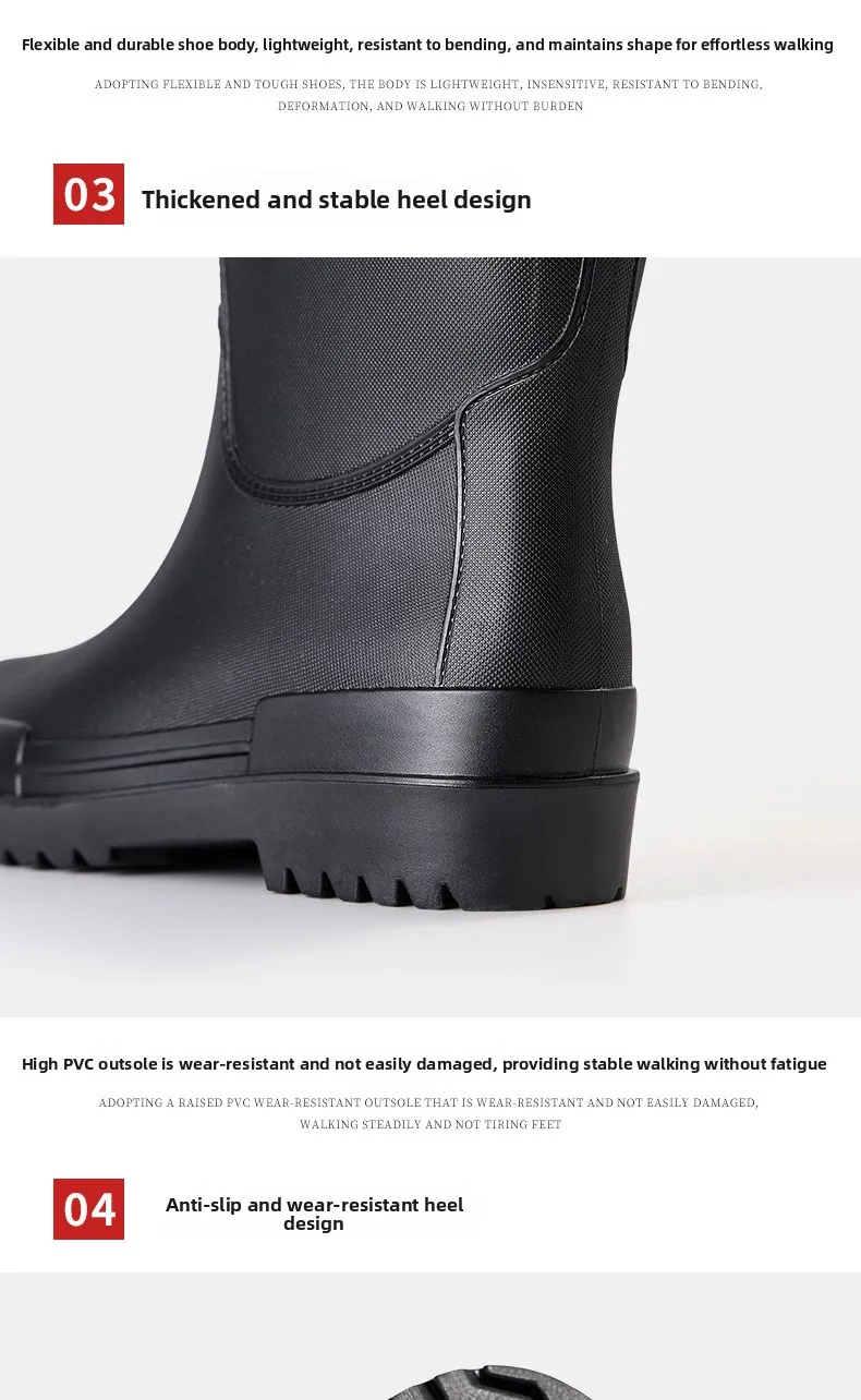 With their low heel and round toe shape, these rain boots offer ergonomic comfort, reducing foot fatigue during long hours of wear.