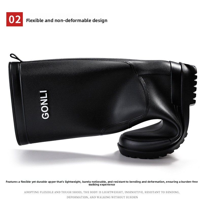 The high-tube design of these men's rain boots adds a touch of fashion to your rainy day outfit while providing excellent protection against wet weather.