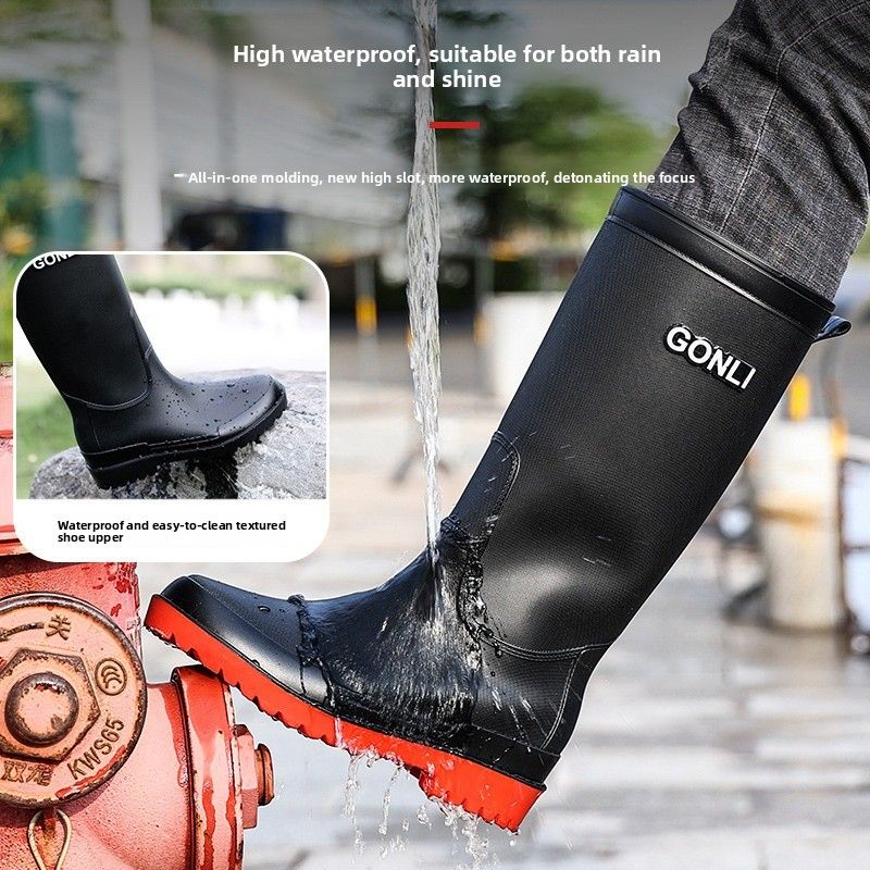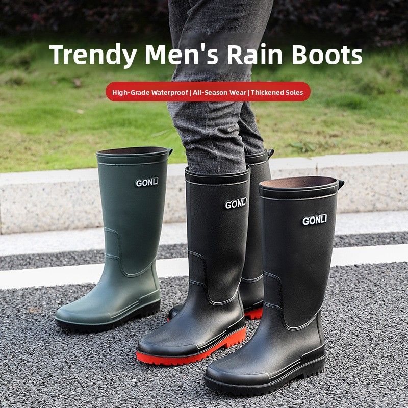 The high-tube design of these men's rain boots adds a touch of fashion to your rainy day outfit while providing excellent protection against wet weather.