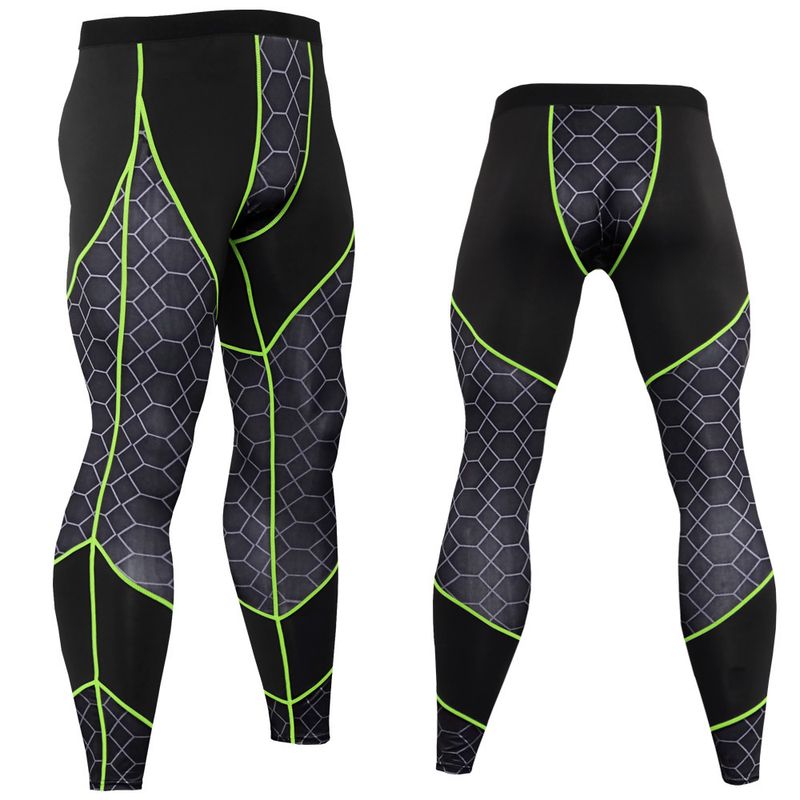 Men's Fitness Printed Patchwork Sports Tight Pants KC123 Grey Green Thread Pants 2XL