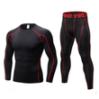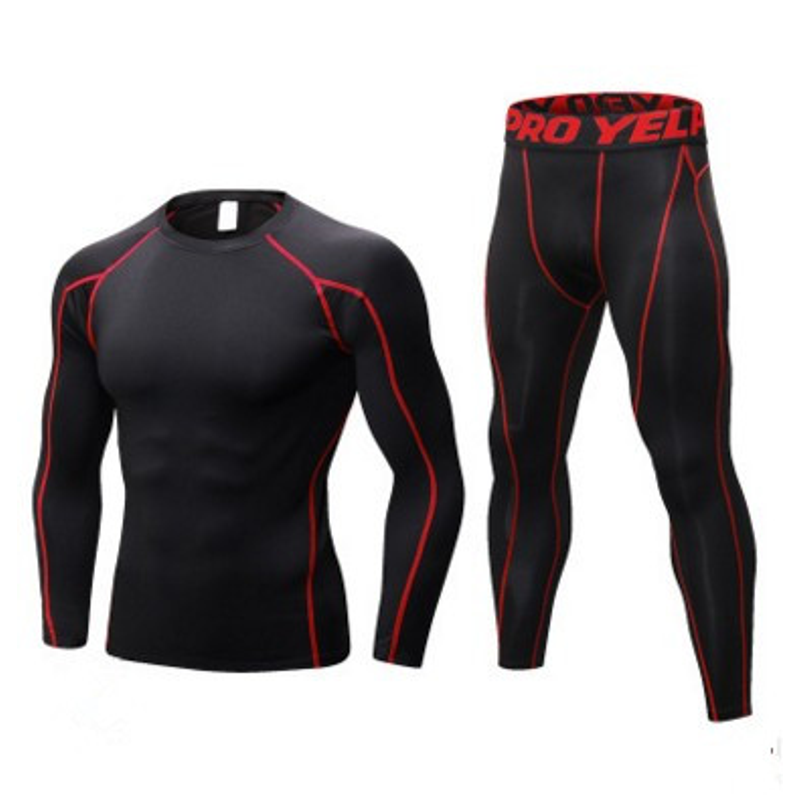 Men's Fitness Running Compression Training Suit Tights Long-sleeved Shirt Pants Leggings Sports Suit Fitness Sportswear Black and black line XXL