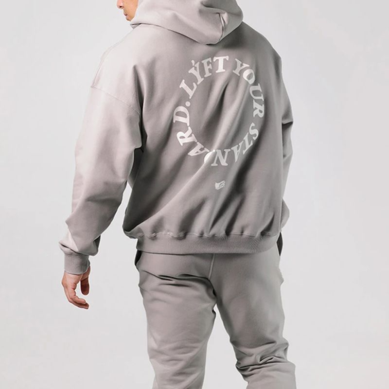 Men's Fitness Sports Hooded Long Sleeve Sweatshirt Grey 2XL