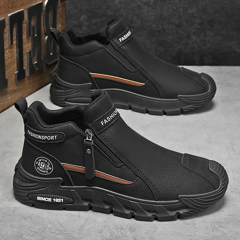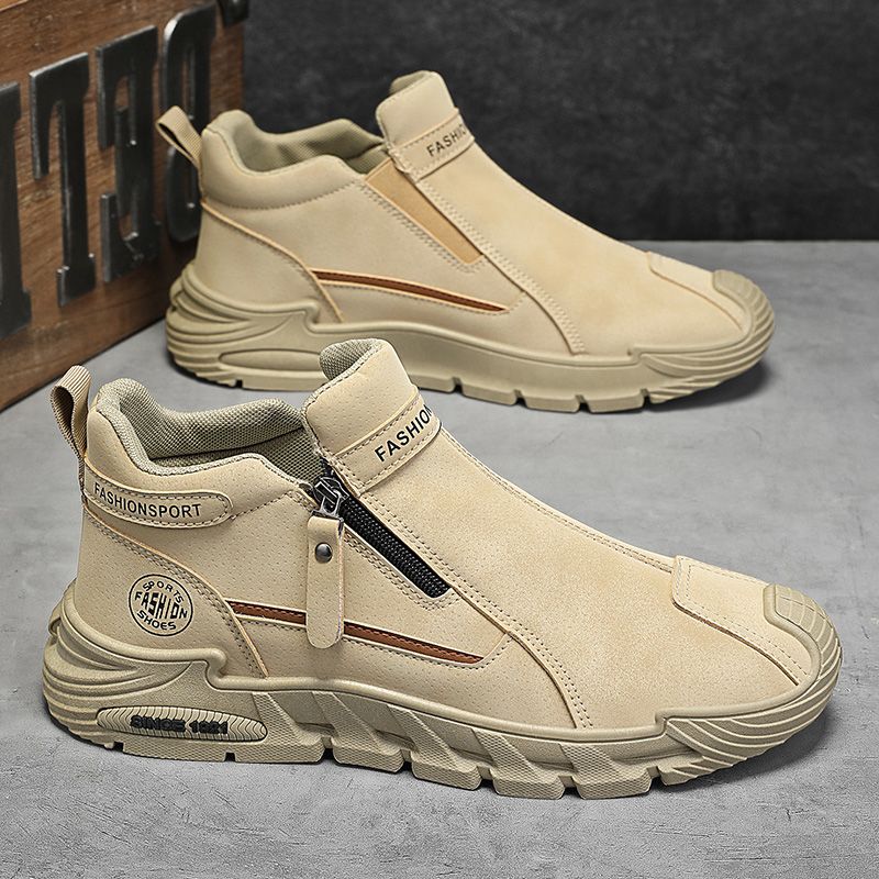 Men's High-Top Zipper Sneakers | Casual Non-Slip Work Boots | Fashion Comfort Walking Shoes for Male