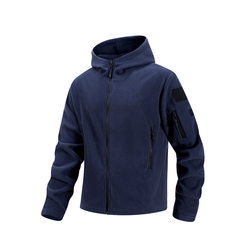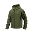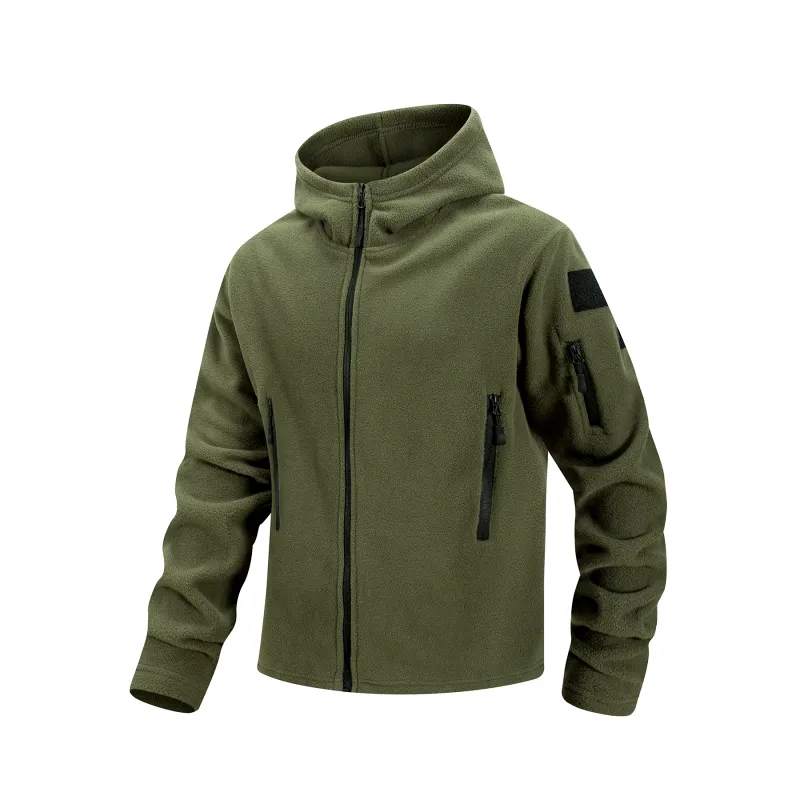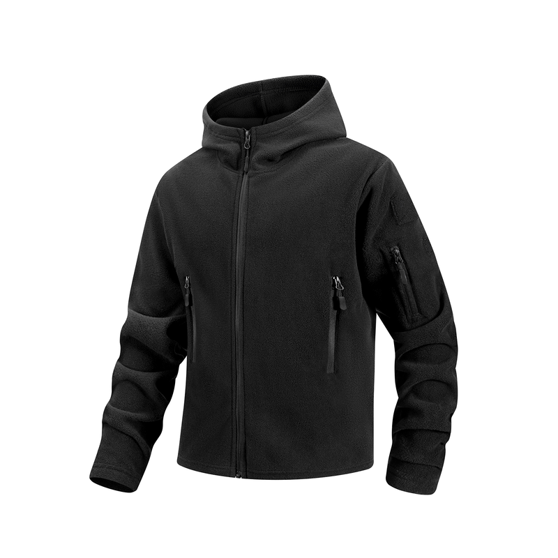 Men's Hiking Tactical Fleece Full Zip Hooded Jacket Multi-Zipper Pockets Design Autumn Winter Warm Outdoor Sports Coat for Men