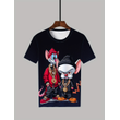 Men's Hip Hop Cartoon Animal Printed Round Neck T-shirt 100% Polyester Fabric Summer Street Top Suitable for Daily Wearing