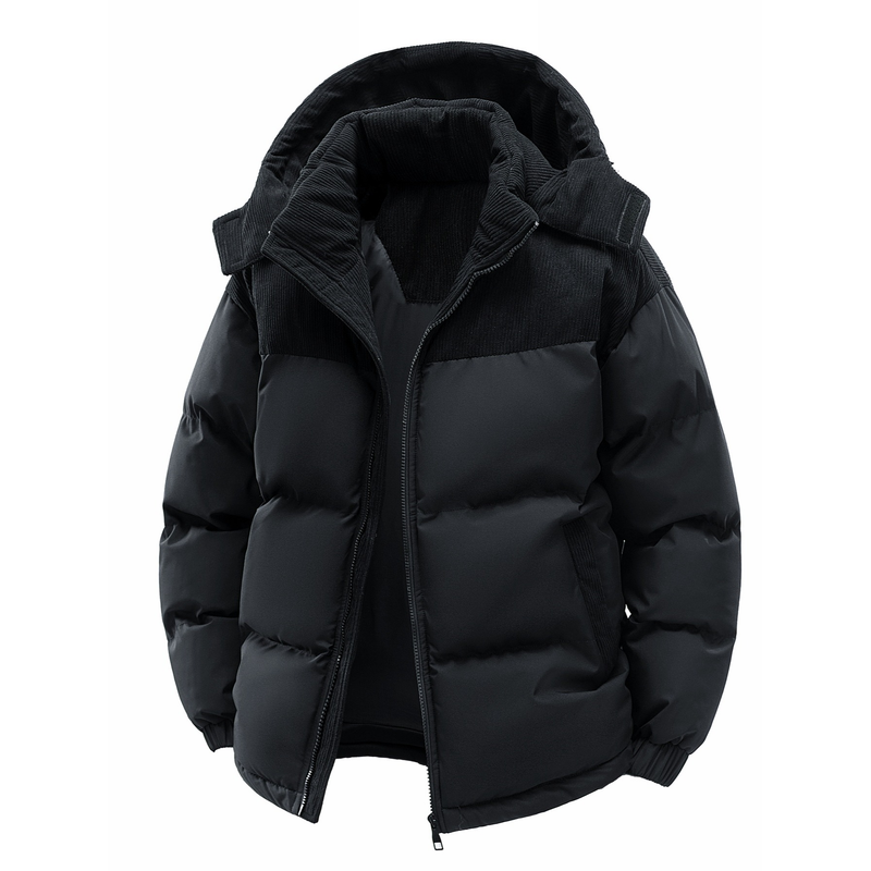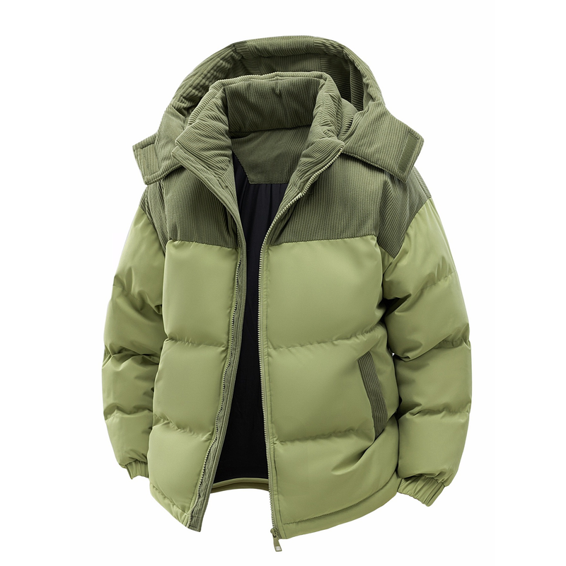 Men's Hooded Cotton Jacket, Thickeneded and Warm in Winter, Windproof and Cold-Resistant, Simple and Versatile for Work Clothing