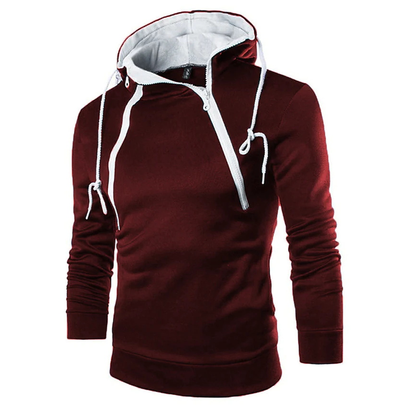 Men's Hoodies Long Sleeve Sweatshirts for Men Zipper Hooded Pullover High Neck Mens Sweatshirt Top Jacket Coat Black Sweater