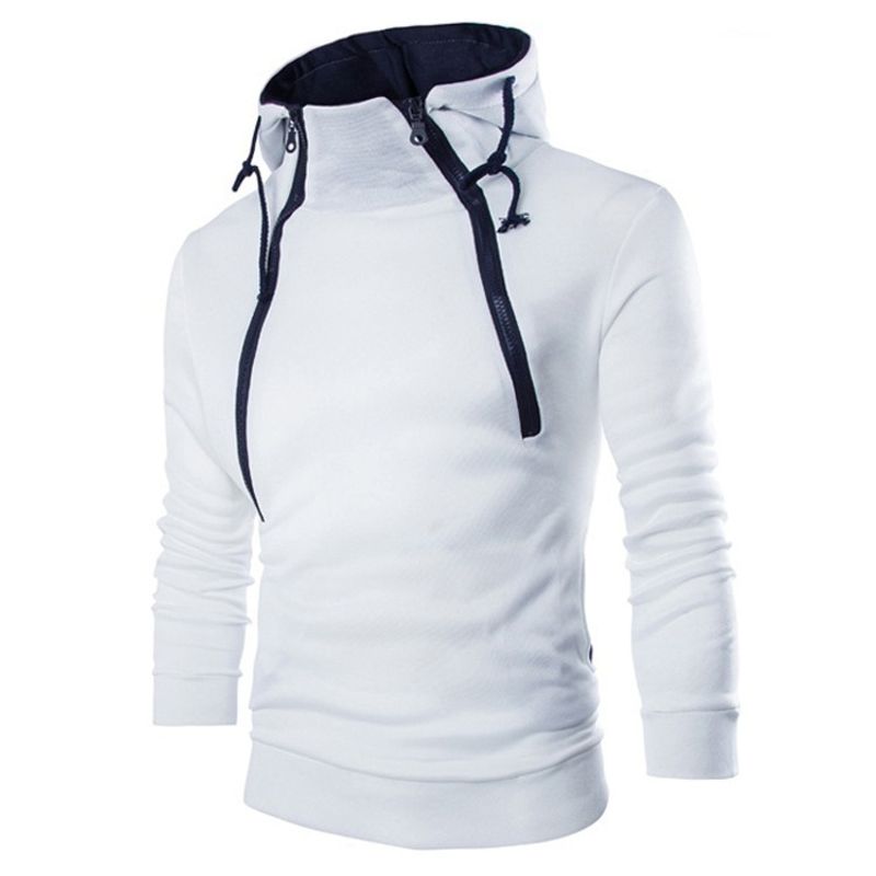 Men's Hoodies Long Sleeve Sweatshirts for Men Zipper Hooded Pullover High Neck Mens Sweatshirt Top Jacket Coat Black Sweater