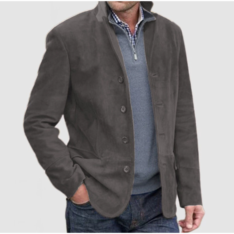 Men's Jacket Winter Stand Collar Button-up Coat Casual Blazer Outerwear Clothing Gray2 L