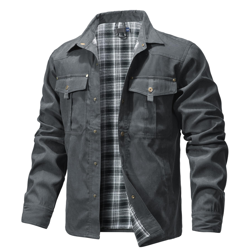 Men's Jackets Spring Flannel Lined Shirt Coat Shacket Casual Snap Button Overshirt Western Cowboy Style High Quality Top US Size