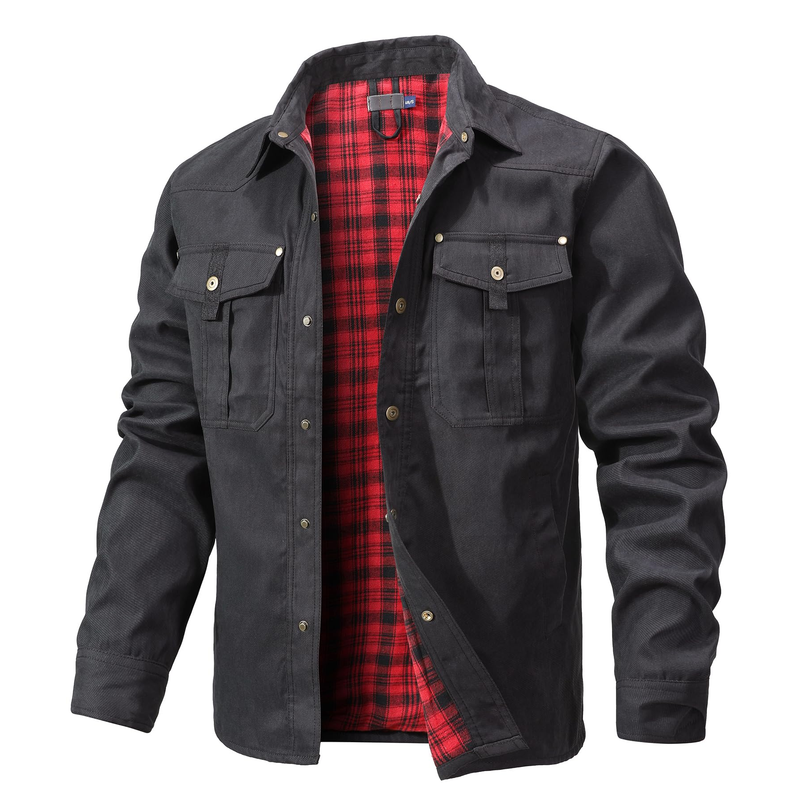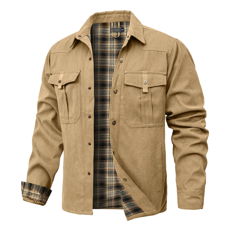 Men's Jackets Spring Flannel Lined Shirt Coat Shacket Casual Snap Button Overshirt Western Cowboy Style High Quality Top US Size
