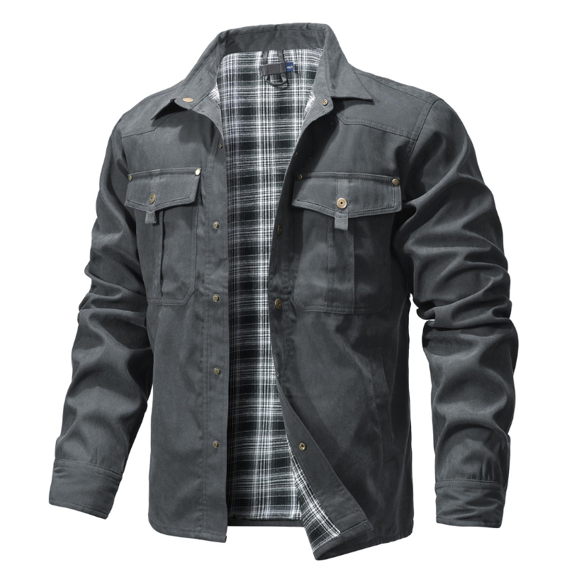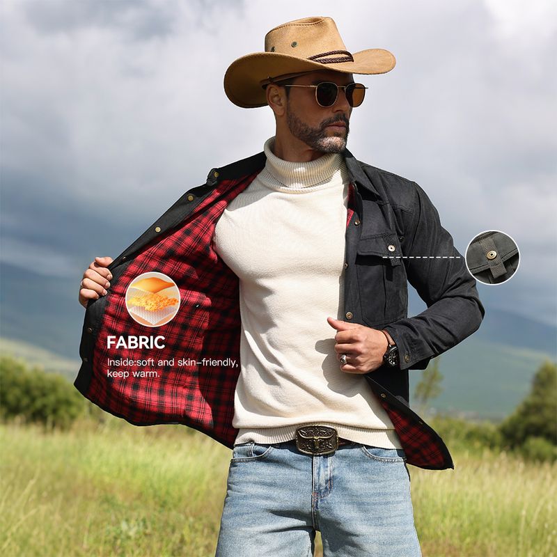Men's Jackets Spring Flannel Lined Shirt Coat Shacket Casual Snap Button Overshirt Western Cowboy Style High Quality Top US Size