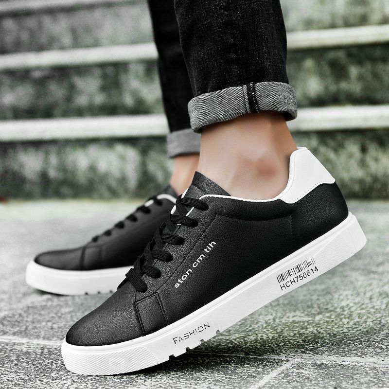 Men's Lace-Up Sneakers, Student Running Men's Shoes, Low-Top Breathable White Shoes Black 7.5