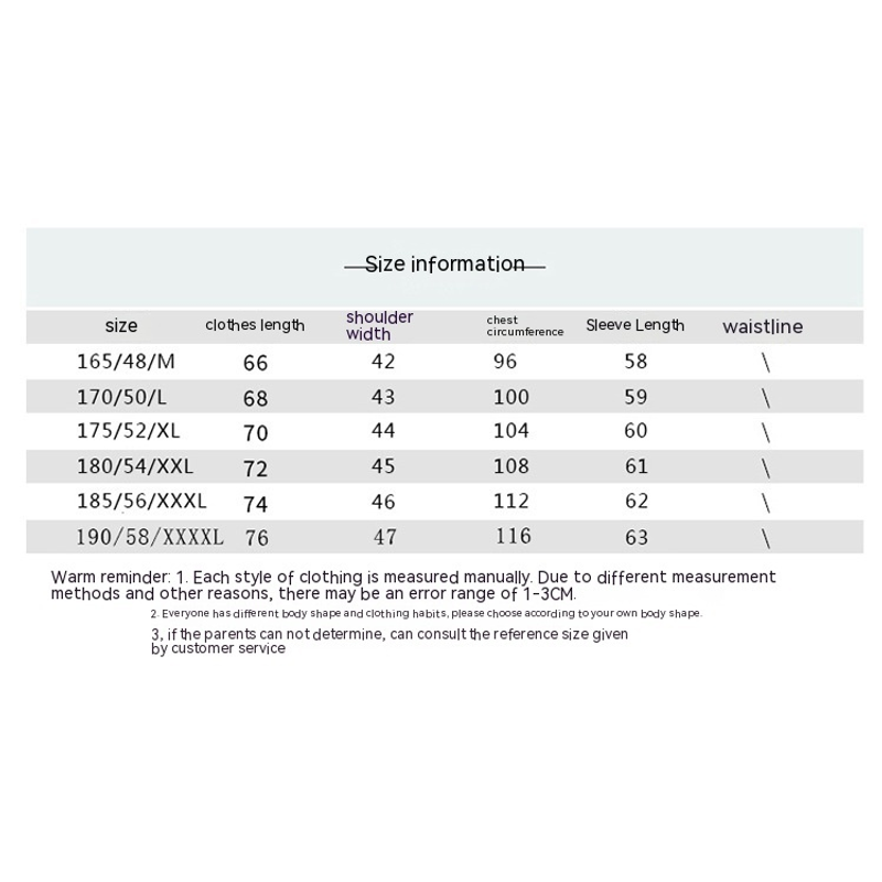 1. Asian sizes are 1 to 2 sizes smaller than European and American people. Choose the larger size if your size between two sizes. Please allow 2-3cm differences due to manual measurement. 2. Please check the size chart carefully before you buy the item, if you don't know how to choose size, please contact our customer service. 3.As you know, the different computers display colors differently, the color of the actual item may vary slightly from the following images.