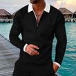 Men's Lapel Zipper Long Sleeve POLO Shirt New Casual T-Shirt Black with grey XL