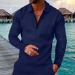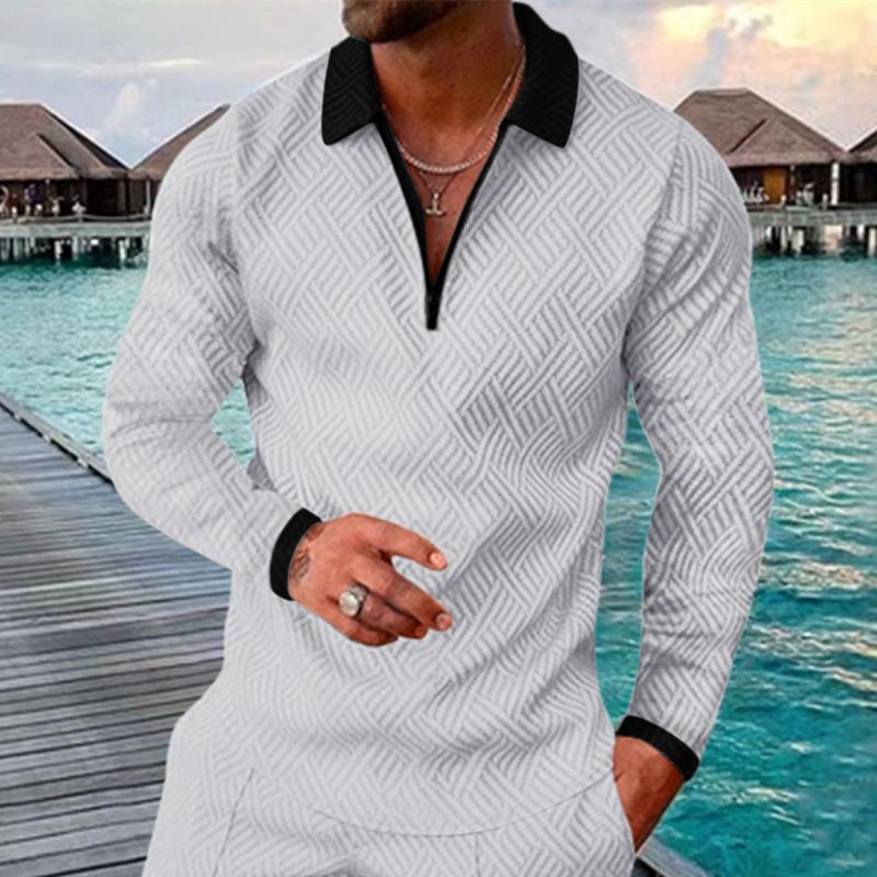 Men's Lapel Zipper Long Sleeve POLO Shirt New Casual T-Shirt Grey with black1 L