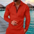 Men's Lapel Zipper Long Sleeve POLO Shirt New Casual T-Shirt Red 2XL