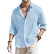 Men's Linen Cardigan Single Row Lapel Long Sleeve Shirt Apricot 2XL