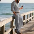 Men's Linen POLO Long-sleeved Trousers Casual Suit Solid Color Two-piece Set Gray XXXL